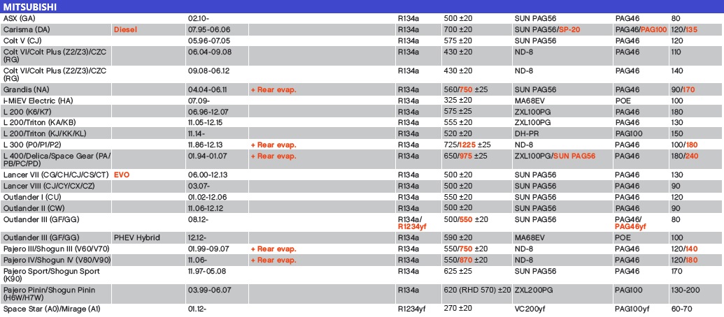 MITSUBISHI CARGA 134A/1234YF