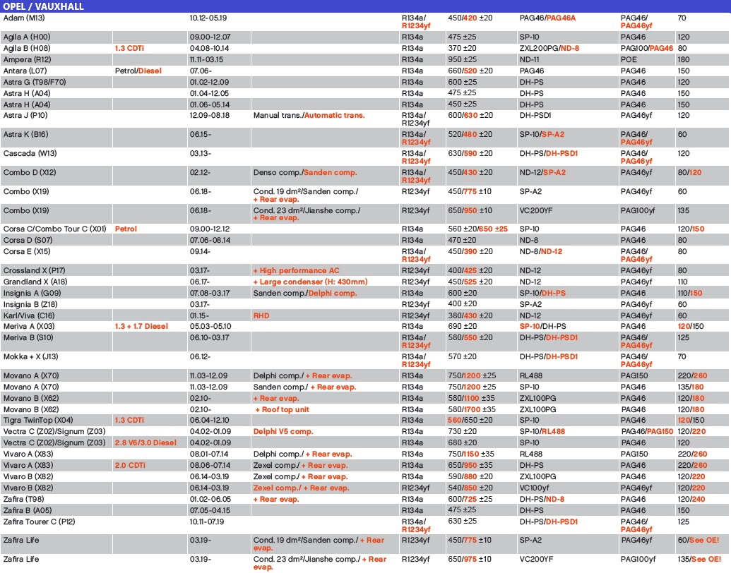 OPEL CARGA 134A/1234YF