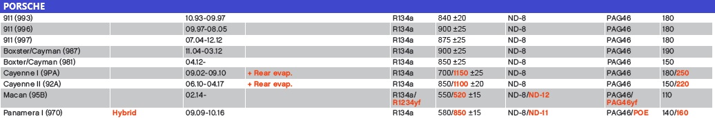 PORSCHE CARGA 134A/1234YF