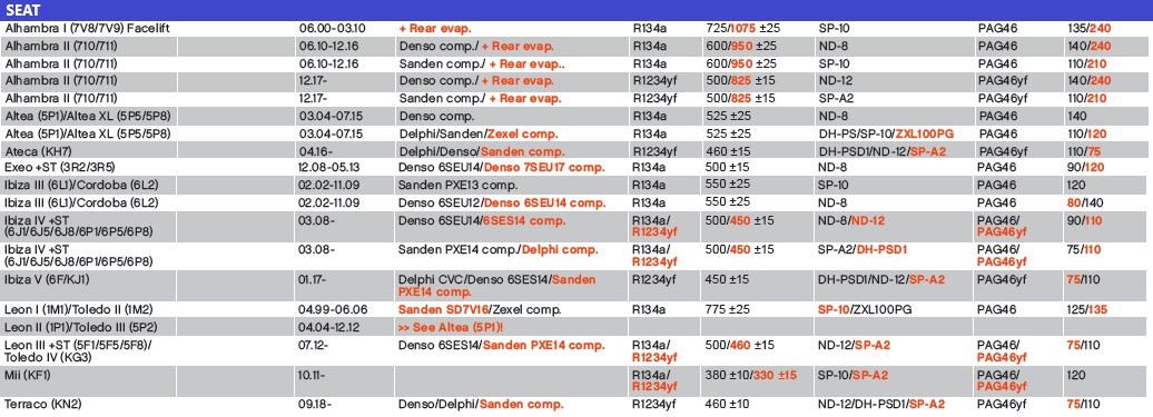 SEAT CARGA 134A/1234YF