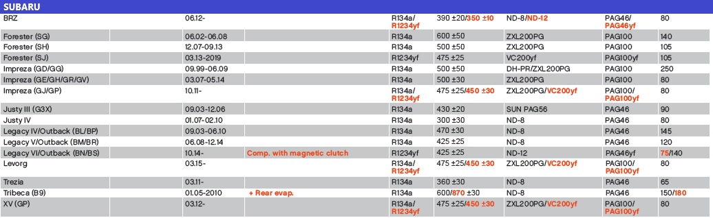 SUBARU CARGA 134A/1234YF