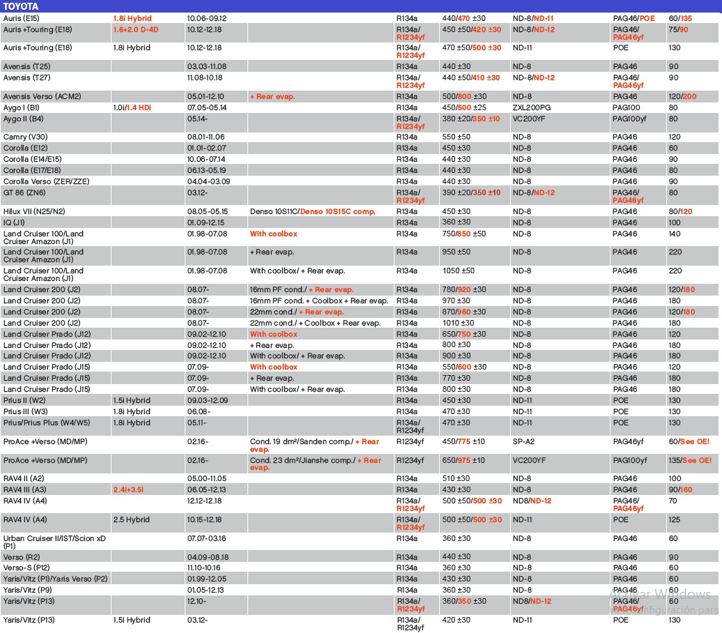 TOYOTA CARGA 134A/1234YF