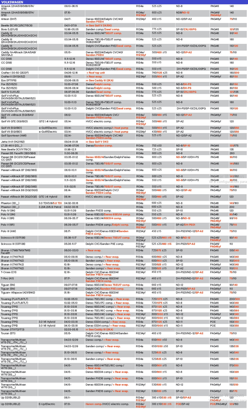 VOLKSWAGEN CARGA 134A/1234YF