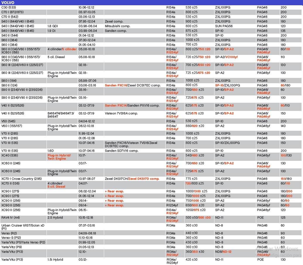 VOLVO CARGA 134A/1234YF