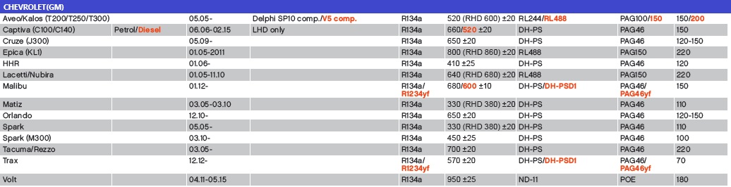 CHEVROLET CARGA 134A/1234YF